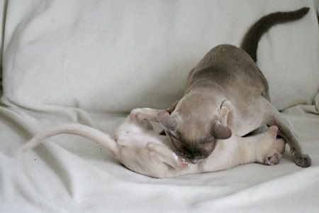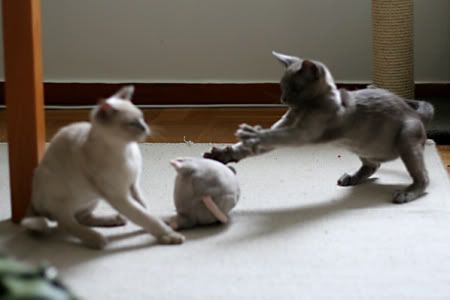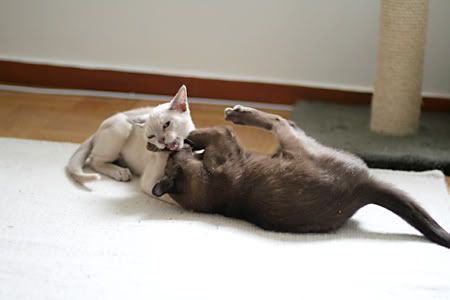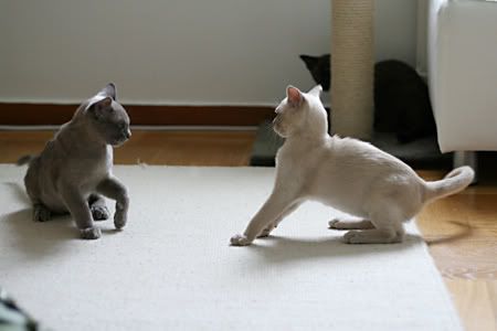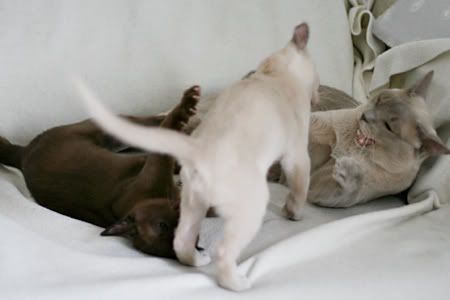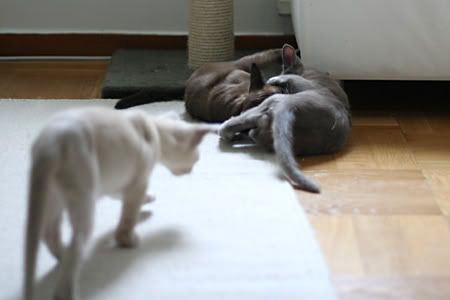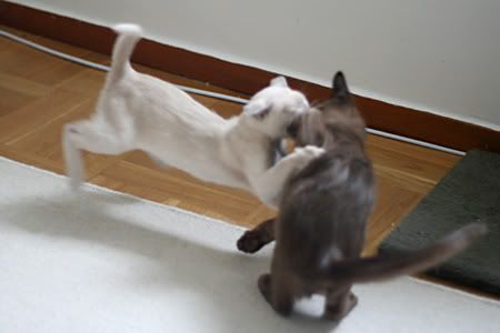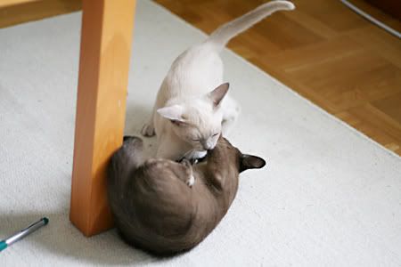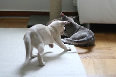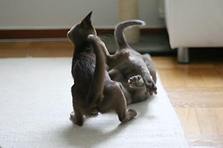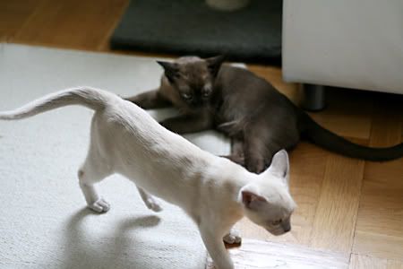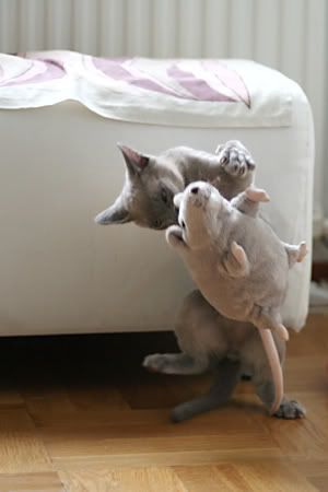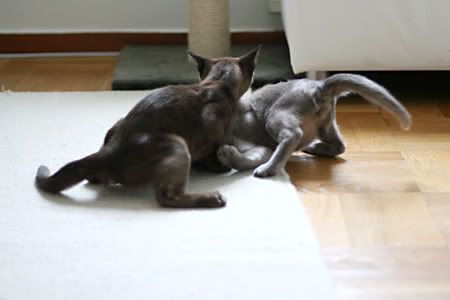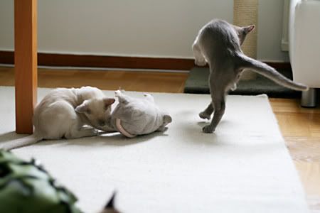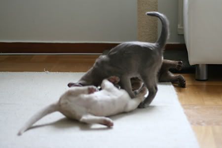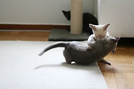 Ja verkligen helt underbara! Haha, vilka stollebollar! :-D Bilden där Idefix tvärnitar när Imse anfaller skrattade jag högt åt! Hur kan så söta små kissemissar se så (förlåt!) DUMMA ut? :-D